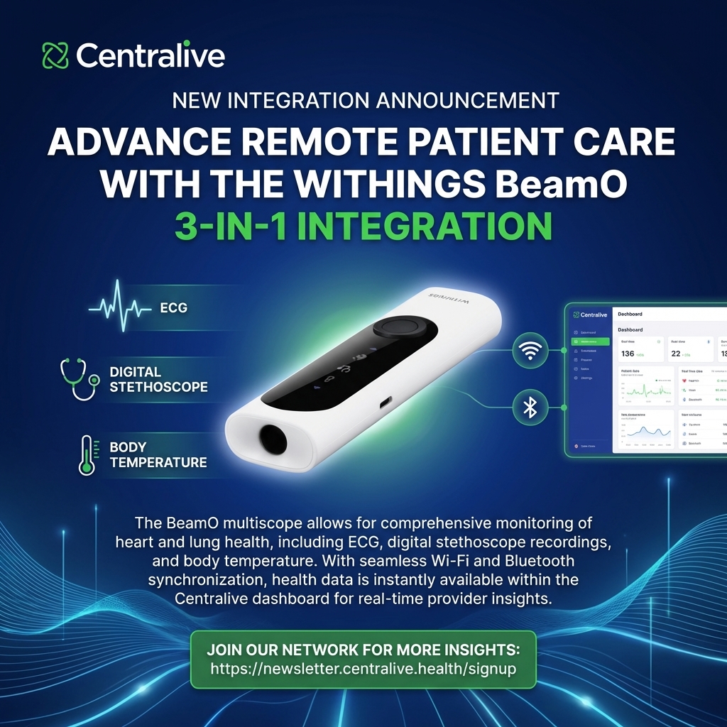 Revolutionizing Remote Care: Centralive Integrates WITHINGS BeamO 3-in-1 Multiscope