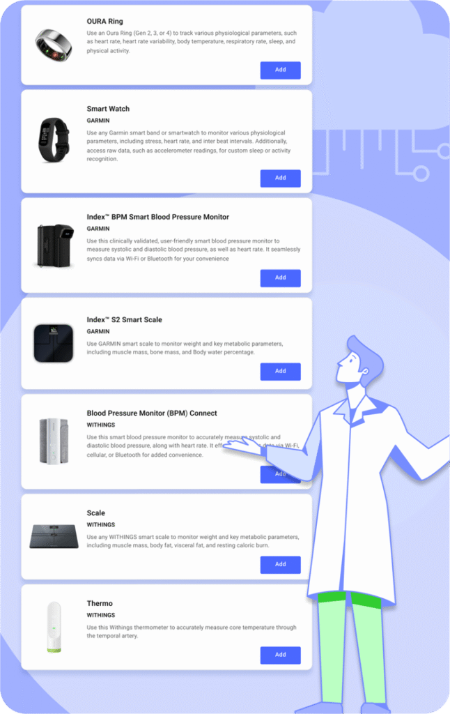 Add Wearables: Specify wearable devices (e.g., fitness trackers) that participants will use to collect health data.