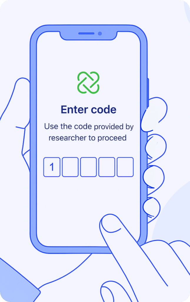 Once the study is created, researchers generate unique recruitment codes for participants. These codes are shared with individuals invited to join the study.