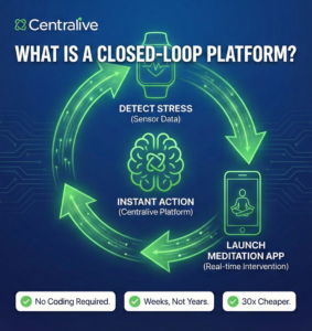 Closed-loop mHealth, explained simply:When your smartwatch detects stress, it automatically launches a meditation app on your phone, in real time. The common belief:Building something like this requires• custom software• large engineering teams• years of development❌ Not true. The reality:With Centerlive, you can build closed-loop mHealth solutions in days or weeks, not years.Why it’s different:30× cheaperNo […]